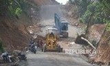 REPUBLIKA.CO.ID, PADANG -- Pekerja menyelesaikan pembangunan jalan lingkar menuju Pelabuhan Teluk Bayur, di Bukit Pantai Air Manis, Padang, Sumatera Barat, Rabu (24/10).