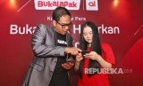 Head of Payment and Financial Services Bukalapak Destya Danang Pradityo (kiri) dan Direktur Akulaku Finance Indonesia Syeki Liang (kanan) menunjukkan fitur BukaCicilan di aplikasi Bukalapak di Jakarta, Rabu (24/10). Bukalapak bekerjasama dengan Akulaku meluncurkan fitur BukaCicilan yang dapat dipergunakan oleh para pengguna Bukalapak (FOTO : Dok Bukalapak)
