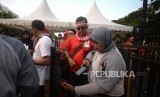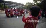 Menjelang pertandingan perempat final Piala AFC antara Indonesia melawan Jepang para penonton mulai memenuhi kawasan Stadion Utama Gelora Bung Karno.