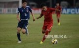 Penyerang Indonesia Witan Sulaeman melewati pemain bertahan Jepang Sugawara dalam babak perempat final Piala Asia U-19 di Stadion Utama Gelora Bung Karno, Senayan, Jakarta, Ahad (28/10). (FOTO : Republika/Iman Firmansyah)