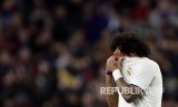 Ekspresi bek Real Madrid Marcello yang diganti pada laga Liga Spanyol antara Barcelona FC melawan Real Madrid di Camp Nou, Barcelona, Ahad (28/10). (FOTO : Manu Fernandez/AP)