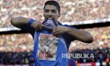 Luis Suarez mencetak hattrick pada laga Liga Spanyol antara Barcelona FC melawan Real Madrid di Camp Nou, Barcelona, Ahad (28/10). (FOTO : Joan Monfort/AP)