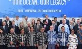 Presiden Joko Widodo (tengah) bersama anggota Non Government Organization (NGO) dari sejumlah negara mengikuti sesi foto bersama saat kegiatan Our Ocean Conference 2018 di Nusa Dua, Bali, Senin (29/10) (FOTO : Prasetia Fauzani/Antara)