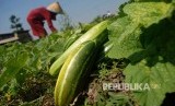 Petani memanen timun di areal persawahan Desa Sapon, Kesamben, Jombang, Jawa Timur, Selasa (30/10/2018). Timun hasil panen tersebut dijual Rp1.800 per kilogramnya. (FOTO : Antara)