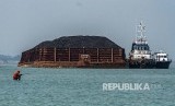 Warga memancing ikan di sekitar kapal tongkang pengangkut batu bara di kawasan perairan Tanjung Emas, Semarang, Jawa Tengah, Selasa (30/10/2018). Kementerian Energi dan Sumber Daya Mineral (ESDM) mencatat, realisasi produksi batu bara nasional hingga akhir Agustus 2018 mencapai 311 juta ton atau 64 persen dari target produksi. (FOTO : Aji Styawan/Antara)