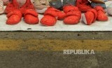 REPUBLIKA.CO.ID, JAKARTA -- Sejumlah sepatu korban kecelakaan Lion Air JT 610 dikumpulkan di Terminal JICT 2, Pelabuhan Tanjung Priok, Jakarta, Kamis (1/11).