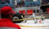 Puing pesawat Lion Air PK-LQP JT-610 di Pelabuhan Tanjung Priok, Jakarta, Senin (5/11/2018). (FOTO : Antara/Galih Pradipta)