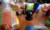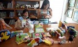 Mereka mengerjakan aneka mainan edukasi anak-anak dari bahan kayu. Ada puzzle berbentuk Pulau Bali, mainan balok bentuk kereta api, dan juga mainan edukasi lainya. Dua orang mengerjakan pemotongan kayu menjadi pola puzzle dan menghaluskan. Untuk pegecatan dilakukan oleh satu orang. Kemudian yang lain melakukan finishing.