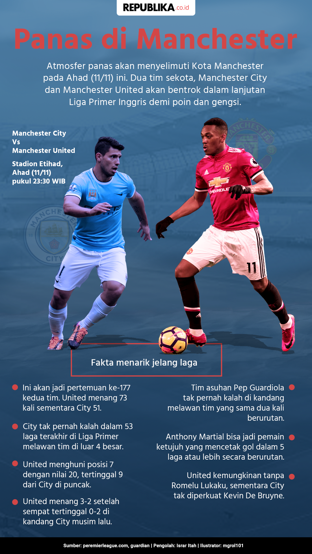 Manchester City dan Manchester United akan bentrok dalam lanjutan Liga Primer Inggris