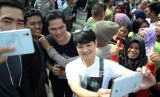 REPUBLIKA.CO.ID, BANDUNG -- Presiden Joko Widodo (Jokowi) menyapa pengunjung Car Free Day (CFD) Dago, Kota Bandung, Ahad (11/11). Kehadiran Jokowi di CFD mendapat sambutan pengunjung, mereka pun berebut berfoto dan bersalaman dengan Jokowi.