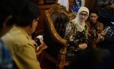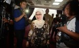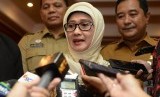 Bupati Indramayu Anna Sopanah memberikan keterangan usai bertemu Menteri Dalam Negeri, Tjahjo kumolo di Kementrian Dalam Negeri, Jakarta, Selasa (13/11). (FOTO : Republika/Iman Firmansyah )
