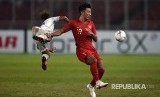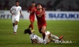Andik Vermansah (kanan) diganjal Feliciano Pinheiro Goncalves (kiri) pada Pertandingan Grup B Piala AFF Suzuki Cup di Stadiun Gelora Bung Karno, Jakarta, Selasa (13/11). (FOTO : Mahmud Muhyidin)
