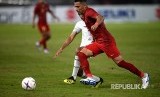 Winger Indonesia Febri Hariyadi (kiri) bek Timor Leste Adelino Trindade Coelho (kanan pada Pertandingan Grup B Piala AFF Suzuki Cup di Stadiun Gelora Bung Karno, Jakarta, Selasa (13/11). (FOTO : Mahmud Muhyidin)