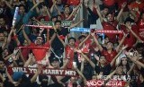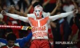 Suporter indonesia memberikan semangat kepada Timnas Indonesia pada Pertandingan Grup B Piala AFF Suzuki Cup di Stadiun Gelora Bung Karno, Jakarta, Selasa (13/11). (FOTO : Mahmud Muhyidin)