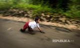 REPUBLIKA.CO.ID, SUKABUMI -- Pagi itu langit mendung menutupi Kampung Cikiwul Tonggoh, Desa Sekarwangi, Kecamatan Cibadak, Kabupaten Sukabumi, Jawa Barat. Tak jauh dari sana terdapat pemukiman diatas perbukitan. Tampak seorang anak SD bertubuh mungil sedang bergegas untuk berangkat sekolah. Mukhlis Abdul Holik (8) tampak berjalan (atau lebih tepat merangkak) dengan kedua kaki dan tangannya.