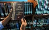 REPUBLIKA.CO.ID, JAKARTA -- Petugas memperlihatkan Alquran dari DKI Jakarta di Perpustakaan Jakarta Islamic Center, Jakarta, Kamis (15/11).