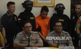 Tersangka kasus pembunuhan satu keluarga HS diperlihatkan kepada media saat konferensi pers di Polda Metro Jaya, Jakarta, Jumat (16/11). (FOTO : Republika/Putra M. Akbar)