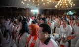 Deklarasi Pertiwi. Ketua Ibu-ibu anggota Perempuan Tangguh Pilih Jokowi (Pertiwi) mengikuti deklarasi dukungan kepada pasangan calon presiden nomor urut 01 Joko Widodo-Maruf Amin di Jakarta, Sabtu (17/11/2018). (FOTO : Republika/ Wihdan)