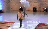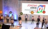 Peluncuran Atribut Jokowi-Amin. Model menggunakan pakaian atribut Indonesia Maju pada acara 01Fest di Jakarta, Sabtu (17/11). (FOTO : Republika/ Wihdan)