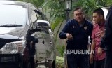 Bupati Pakpak Bharat, Remigo Yolanda(kiri) Berutu tiba di Komisi Pemberantasan Korupsi, Jakarta, Ahad (18/11). (FOTO : Republika/Iman Firmansyah)