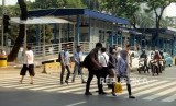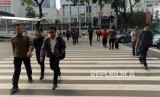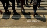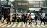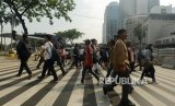 REPUBLIKA.CO.ID, JAKARTA -- Sejumlah warga menyeberangi pelican crossing di Jalan Jenderal Sudirman, Jakarta, Rabu (21/11).