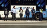 Sejumlah warga menunggu untuk menyeberangi pelican crossing di Jalan Jenderal Sudirman, Jakarta, Rabu (21/11). (FOTO : Republika/Putra M. Akbar)