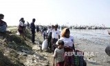 Muslim Rohingya tiba di Desa Thae Chaung, Sittwe, negara bagian Rakhine, Myanmar, Rabu (21/11). (FOTO : Nyunt Win/EPA EFE)