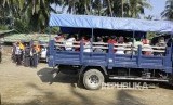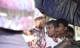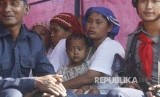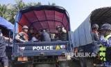 REPUBLIKA.CO.ID, RAKHINE -- Sejumlah warga Rohingya menunggu di truk Polisi Myanmar untuk dibawa kembali menuju penampungan sementara yang didirika pemerintah di Desa ManSi dekat Sittwe, Negara Bagian Rakhinne, Myanmar, Rabu (21/11).