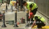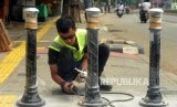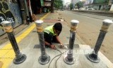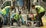 REPUBLIKA.CO.ID, JAKARTA -- Sejumlah petugas Suku Dinas Bina Marga Jakarta Selatan saat memasang bollard di kawasan Mampang, Jakarta Selatan, Ahad (25/11).