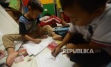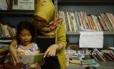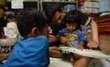 REPUBLIKA.CO.ID, JAKARTA -- Anak-anak membaca buku dongeng di Sekolah Komunitas Jendela, Manggarai, Jakarta, Ahad (25/11).