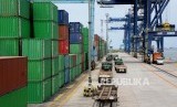 Aktivitas bongkar muat peti kemas di Pelabuhan Tanjung Priok, Jakarta, Ahad (25/11). (FOTO : Republika/Prayogi)