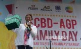 Menteri Kelautan dan Perikanan Susi Pudjiastuti mengkampanyekan pemakaian kantung ramah lingkungan saat sambutan dalam acara SCBD-AGP Family Day di kawasann SCBD, Jakarta, Ahad (25/11). (FOTO : Republika/Iman Firmansyah)