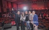 Kepala Badan Ekonomi Kreatif Triawan Munaf (kiri) berfoto dengan Founder & CEO Bukalapak Achmad Zaky (tengah) dan peseta Kopdar Akbar Komunitas Bukalapak ke-3 ini dihadiri oleh ribuan pelapak dan pengguna setia Bukalapak di Jakarta, Sabtu (24/11). (FOTO : Dok Bukalapak)