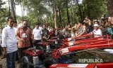 Presiden Joko Widodo (kiri) didampingi AVP Program Pemerintah Divisi Bisnis Usaha Kecil Bank BNI Akbar Ibrahim (kedua kiri) melihat bantuan PT Bank Negara Indonesia (Persero) Tbk di taman hutan wisata punti kayu Palembang, Sumatera Selatan, Minggu (25/11) (FOTO : Nova Wahyudi/Antara)