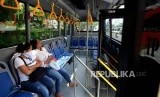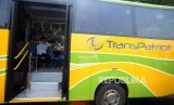 Warga menaiki angkutan umum TransPatriot jurusan Terminal Bekasi - Harapan Indah di Terminal Bekasi, Jawa Barat, Senin (26/11). (FOTO : Republika/Iman Firmansyah)