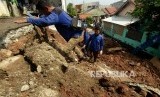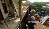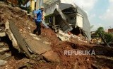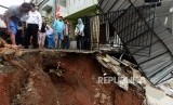 REPUBLIKA.CO.ID, JAKARTA -- Sejumlah warga melihat longsoran tanah yang menghancurkan satu rumah di Perumahan Pesona Kalisari, Pasar Rebo, Jakarta Timur, Selasa (27/11).