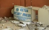 Plang Ketua RT yang jatuh bersama puing-puing bangunan akibat longsor di Perumahan Pesona Kalisari, Pasar Rebo, Jakarta Timur, Selasa (27/11). (FOTO : Republika/Putra M. Akbar)