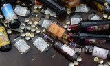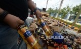 Minuman keras yang dimusnahkan di halaman parkir Bea Cukai Bekasi, Jawa Barat, Rabu (28/11). (FOTO : Republika/Iman Firmansyah)