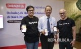 Destya Danang Pradityo (Head of Payment & Financial Services Bukalapak), Halim Haryono (Deputi Direktur Pengelolaan Investasi OJK), Muhammad Hanif (Direktur Pengembangan Bisnis tanamduit)Â menunjukkan fitur tanamduit di aplikasi Bukalapak di Jakarta, Kamis (29/11). (FOTO : Dok Bukalapak)
