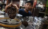 Karyawan toko dunia kopi melayani pembeli di Pasar Santa, Jakarta, Kamis (29/11). Asosiasi Eksportir Kopi Indonesia memproyeksi produksi kopi tahun ini bisa naik mejadi 630.000-650.000 ton. (FOTO : Prayogi/Republika)