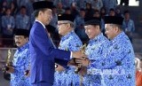 Presiden Republik Indonesia Joko Widodo menyerahkan penghargaan KORPRI Award 2018 kategori Kementerian/Lembaga kepada Ketua Dewan Pengurus KORPRI Kementerian Koperasi dan UKM Meliadi Sembiring pada puncak Peringatan HUT KORPRI ke-47 di Istora Senayan Jakarta, Kamis (29/11). (FOTO : KEMENKOP UKM )