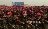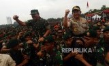 Sejumlah pasukan TNI meneriakan yel-yel saat apel bersama TNI dan Polri di Monas, Jakarta, Jumat (30/11). (FOTO : Republika/Putra M. Akbar)