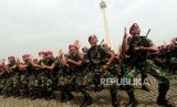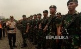 Sejumlah pasukan TNI melaksanakan apel bersama TNI dan Polri di Monas, Jakarta, Jumat (30/11). (FOTO : Republika/Putra M. Akbar)