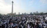 REPUBLIKA.CO.ID, JAKARTA -- Sejumlah massa dari berbagai organisasi islam mengikuti aksi Reuni 212 di Lapangan Monumen Nasional, Jakarta, Ahad, (2/12). Aksi ini adalah peringatan sekaligus ajang silaturahim massa aksi 212 yang dilakukan tahun 2016 lalu.