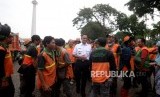 REPUBLIKA.CO.ID, JAKARTA -- Gubernur DKI Jakarta, Anies Baswedan meninjau pembersihan sampah usai reuni aksi 212 di Lapangan Monas, Jakarta, Ahad (2/12).