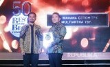 Presiden Direktur PT Wahana Ottomitra Multiartha Tbk (WOM Finance), Djaja Suryanto Sutandar menerima penghargaan Best of the Best 2018 Award dari Senior Editor Majalah Forbes Indonesia Yessar Rosendar di Jakarta pada Kamis (29/11). (FOTO : Antara )