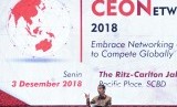 Presiden Joko Widodo menyampaikan arahan saat pembukaan CEO Networking 2018 di Jakarta, Senin (3/12/2018). Presiden meminta pelaku usaha menghentikan ekspor barang mentah dan melakukan hilirisasi. (FOTO : Puspa Perwitasari/Antara)