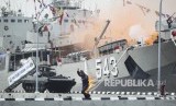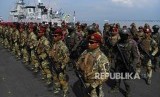 REPUBLIKA.CO.ID, JAKARTA -- Prajurit TNI Angkatan Laut mengikuti Upacara Peringatan Hari Armada 2018 di Dermaga Kompleks Satuan Koarmada I Pondok Dayung, Jakarta Utara, Rabu (5/12).