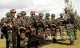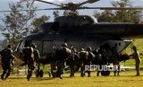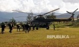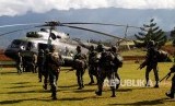 REPUBLIKA.CO.ID, WAMENA -- Prajurit TNI bersiap menaiki helikopter menuju Nduga di Wamena, Papua, Rabu (5/12).