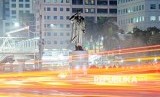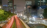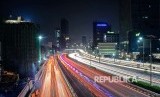 Pancaran lampu kendaraan yang melintasi jalanan meninggalkan jejak cahaya berpadu dengan lansekap gedung-gedung bertingkat Kota Jakarta. Pesona malam Jakarta selalu membuat kerinduan yang unik yang akan membuat terkenang dan panggilan untuk datang kembali.